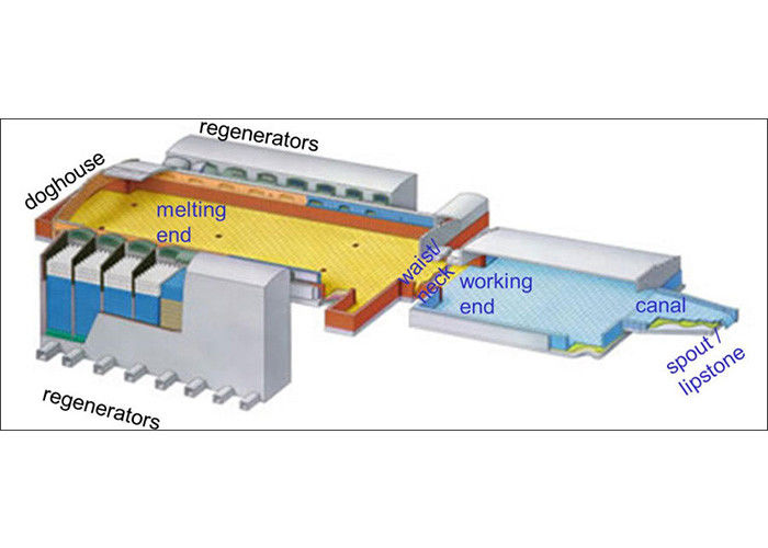 300TPD Перекрестно-огневая регенеративная печь для плавки стекла большой производительности